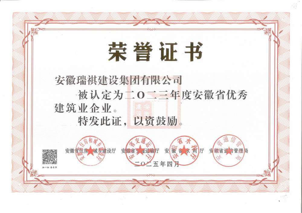 近日,安徽省住建廳公布了2023年度安徽省優秀建筑業企業名單,我公司“安徽瑞祺建設集團有限公司”憑借卓越的實力與出色的表現光榮上榜。